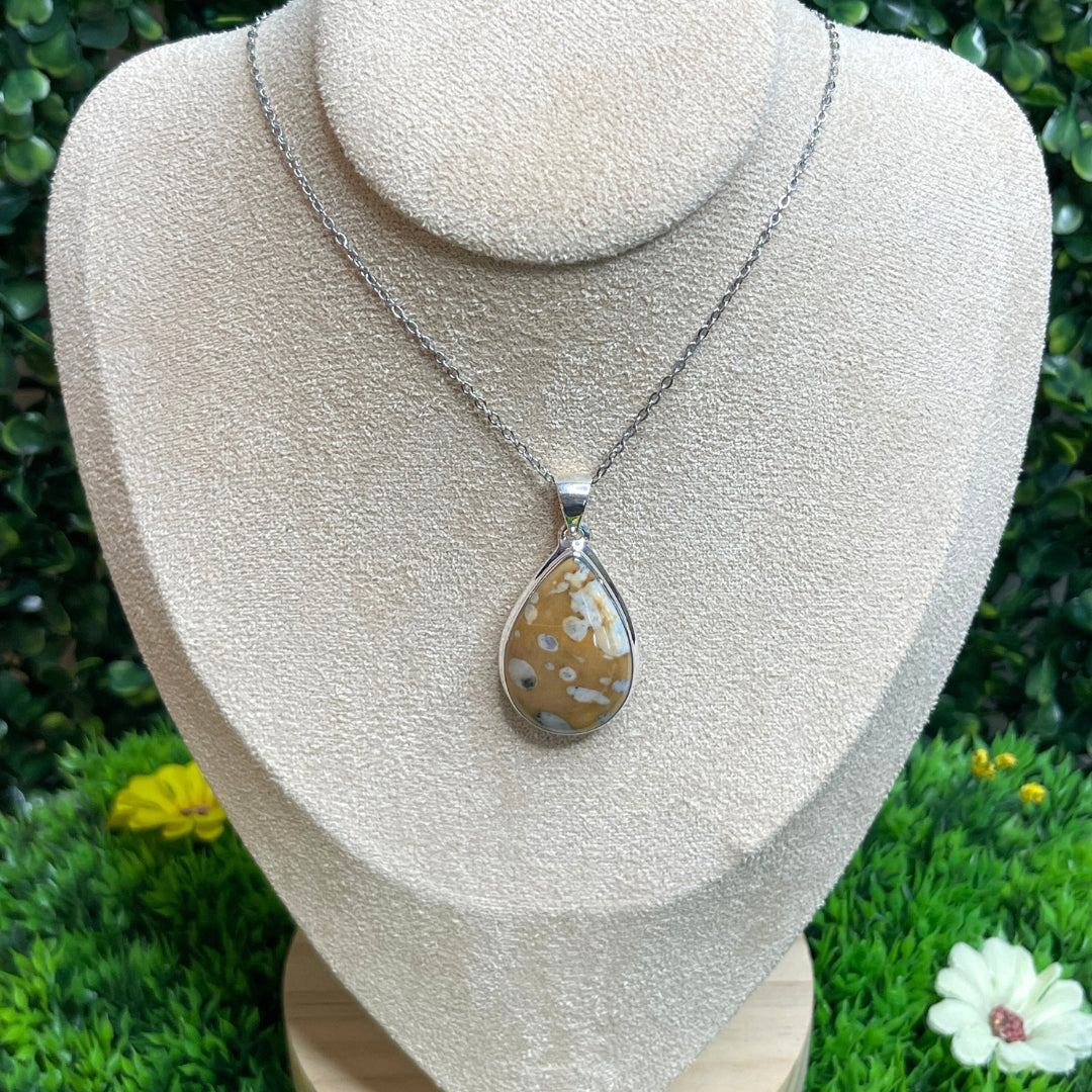 Pendentif Argent Jaspe Faon. Fabriqué à partir de Jaspe Faon véritable, ce pendentif mélange harmonieusement la pierre de
