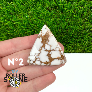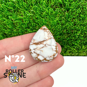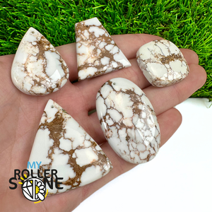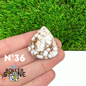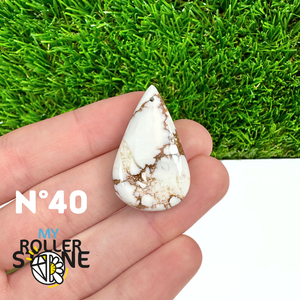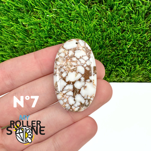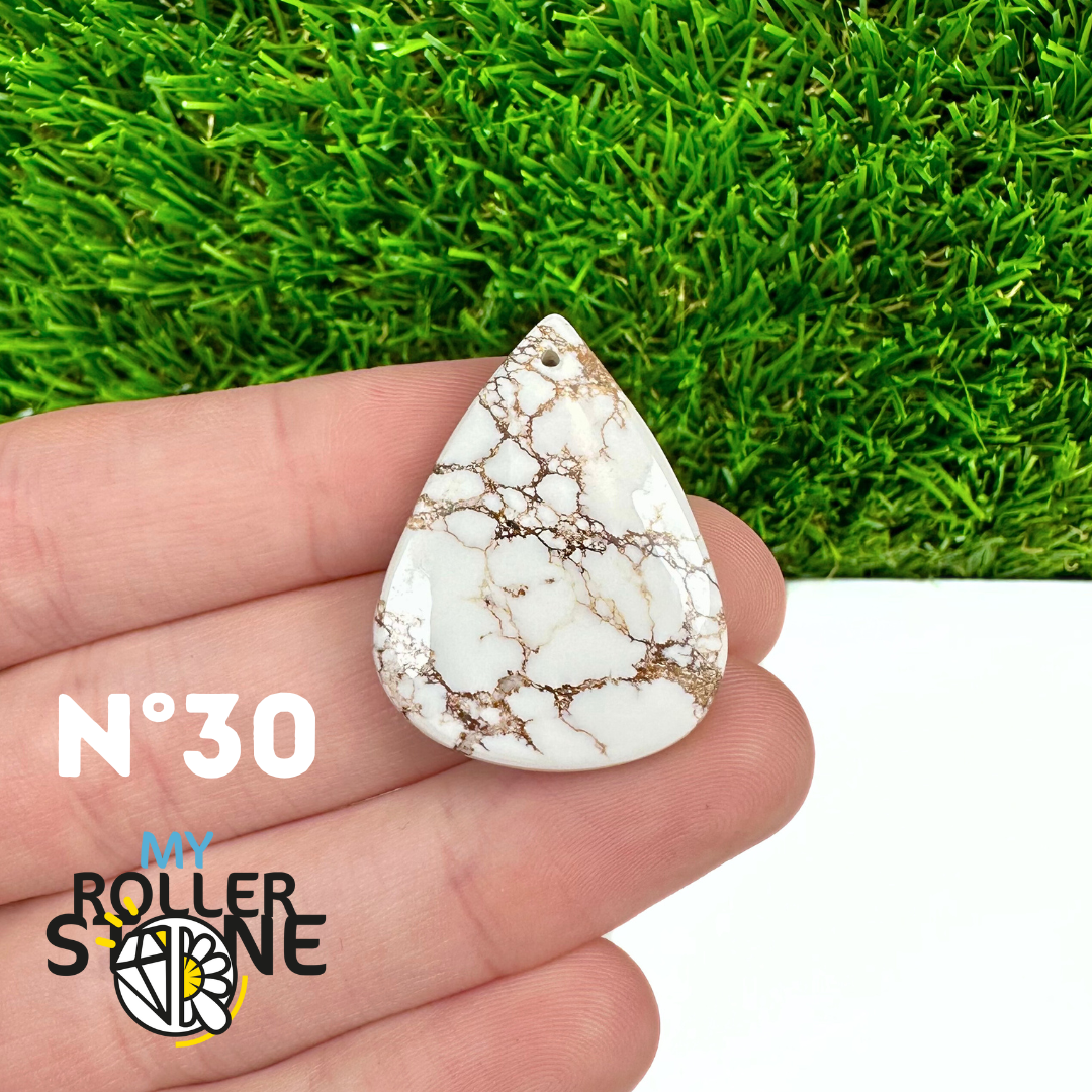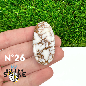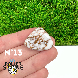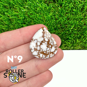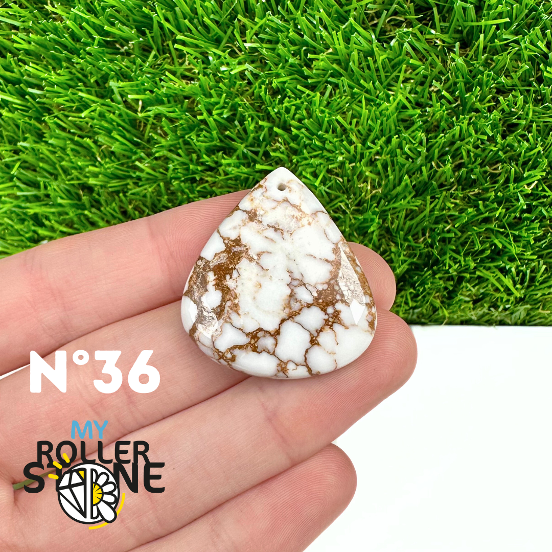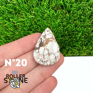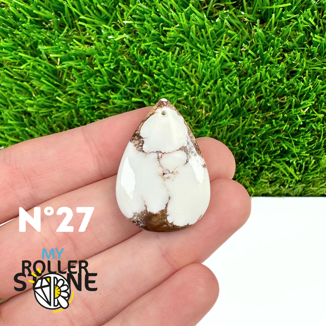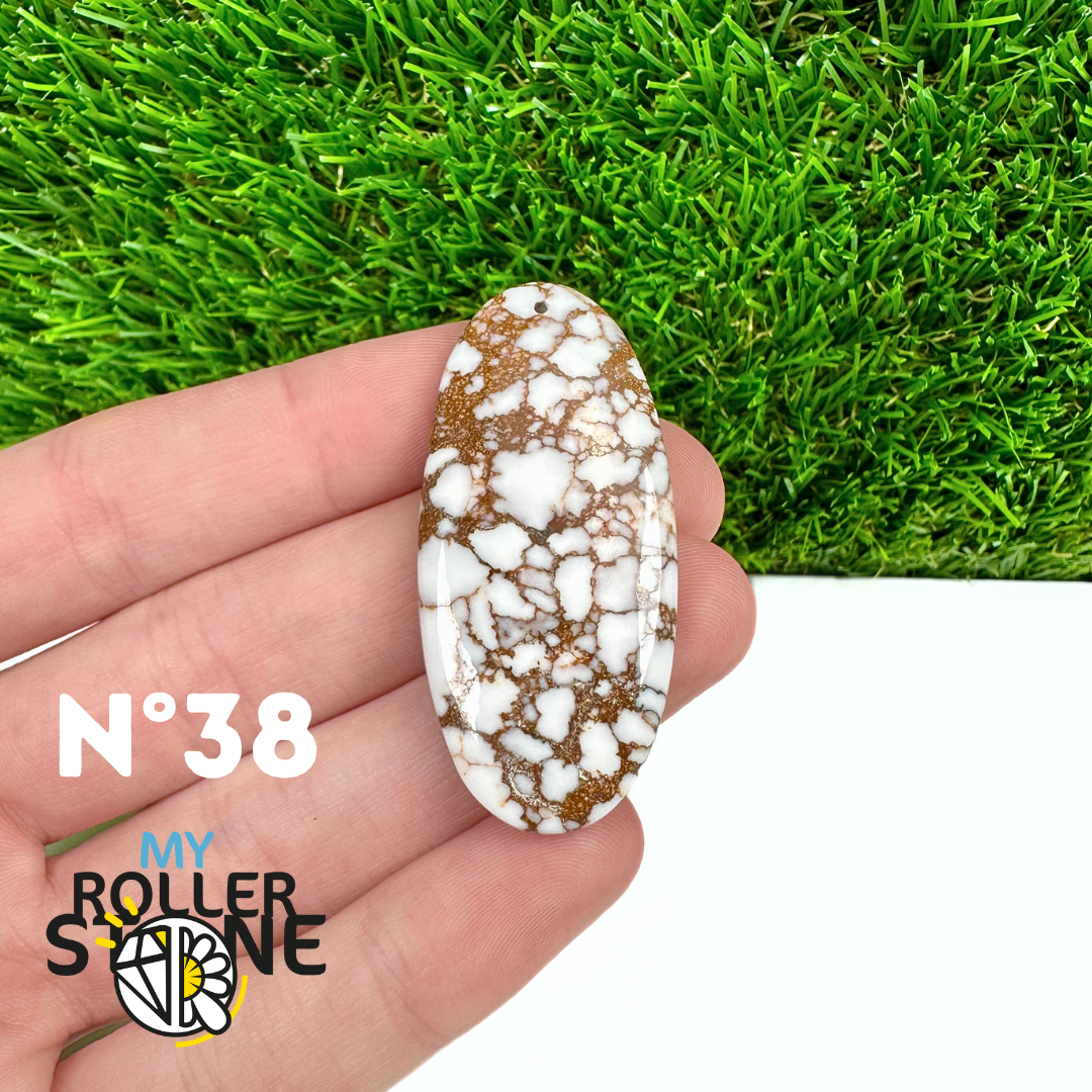La Magnésite « Cheval Sauvage » (connue internationalement sous le nom Wild Horse Magnesite) est une pierre naturelle reconnaissable à ses forts contrastes entre des tons crème à blanc et des veines brun foncé à noires. Son aspect brut et graphique évoque les paysages arides et l’esprit libre, ce qui en fait une pierre très appréciée en bijouterie artisanale.