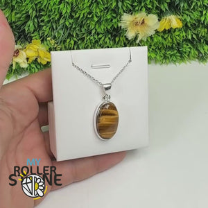 Ce pendentif en Œil de Tigre naturel monté en argent 925 séduit par ses reflets chatoyants aux nuances brun doré. Son effet lumineux et profond en fait un bijou élégant, puissant et intemporel.