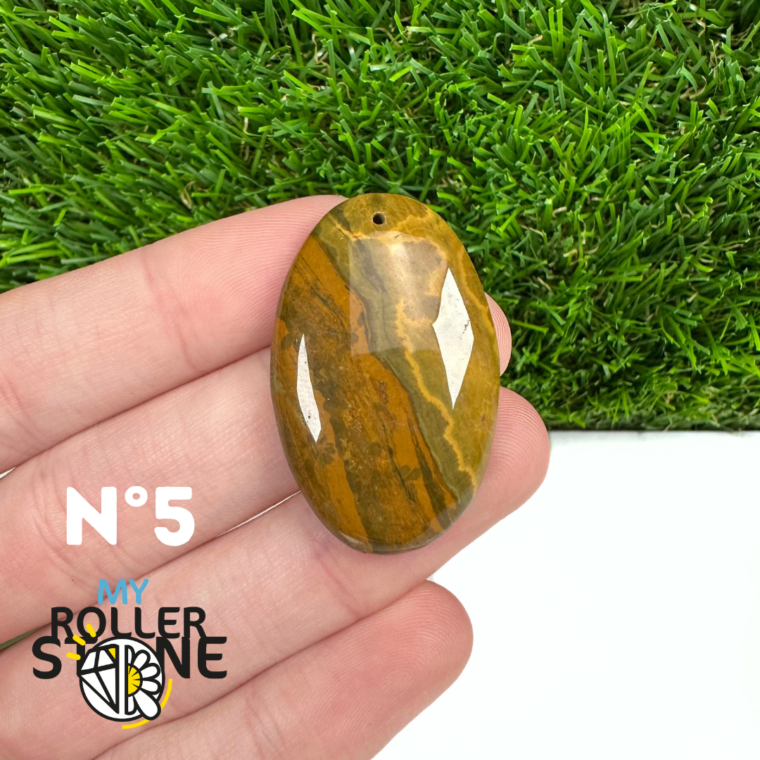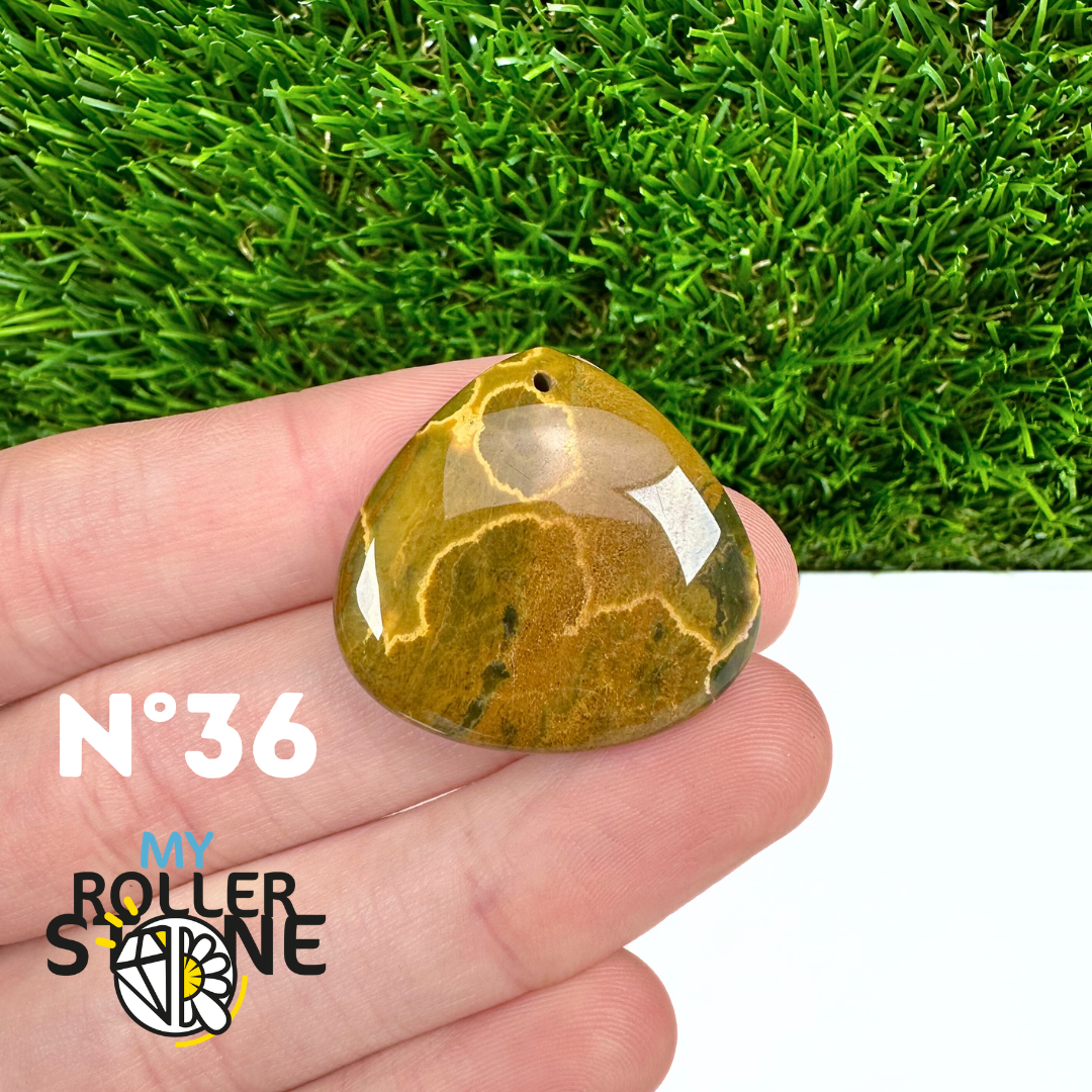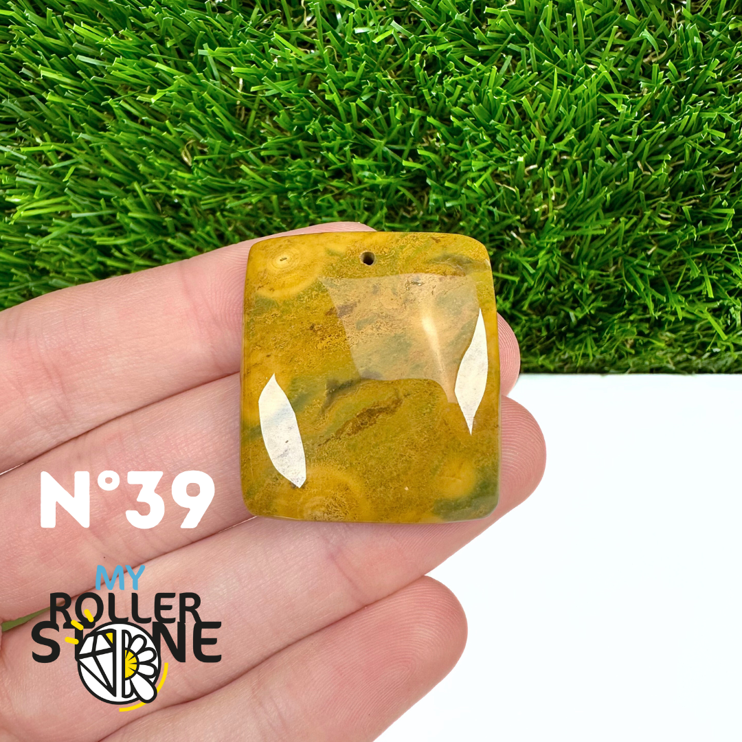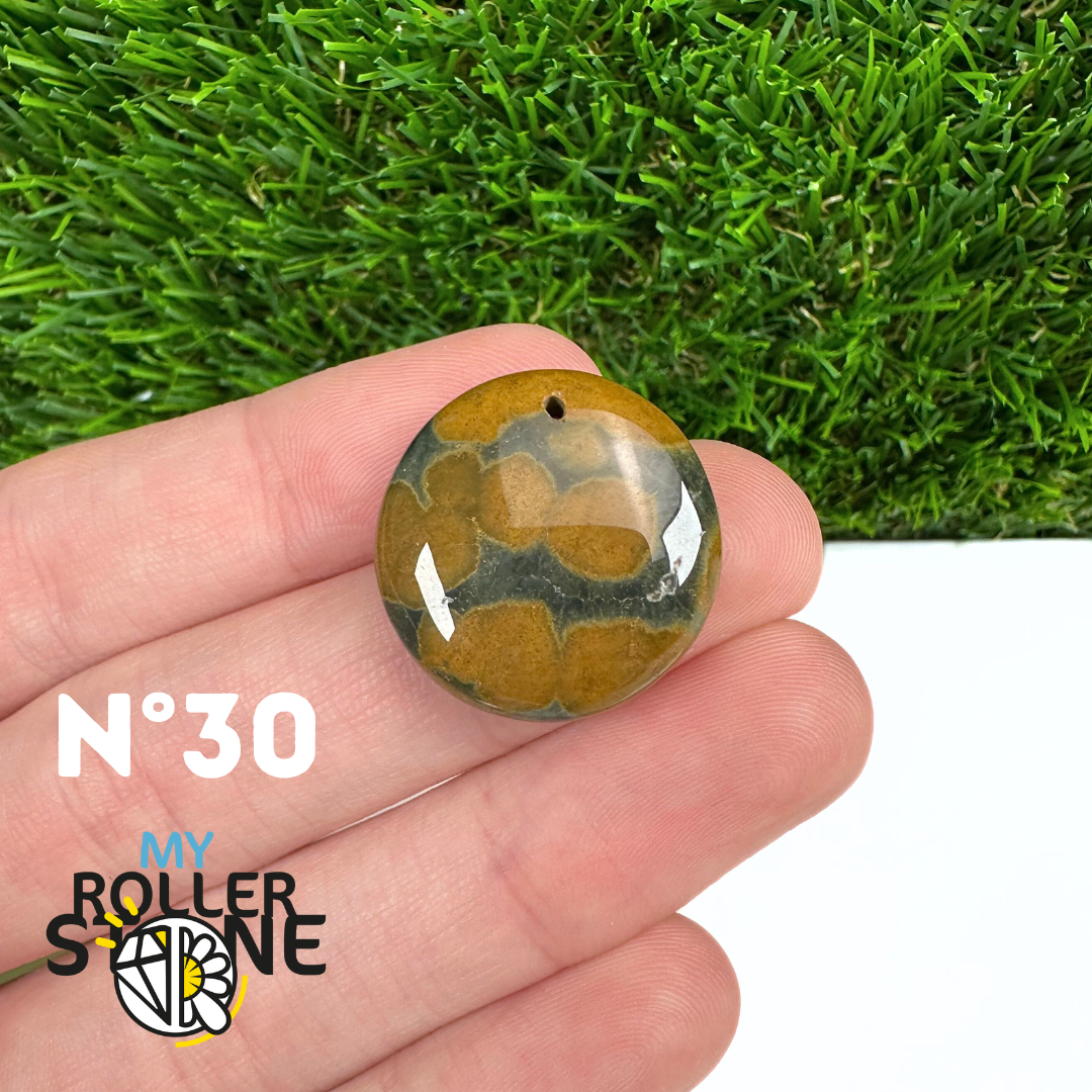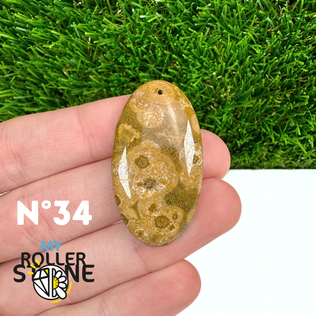 Ce pendentif percé en Jaspe Océan naturel – qualité 5A se distingue par ses motifs circulaires et ondulés caractéristiques, mêlant des nuances de vert, beige, crème, rose ou brun. Sélectionné pour sa qualité supérieure, chaque pendentif présente une richesse graphique remarquable et une finition polie soignée, faisant de chaque pièce un bijou unique.