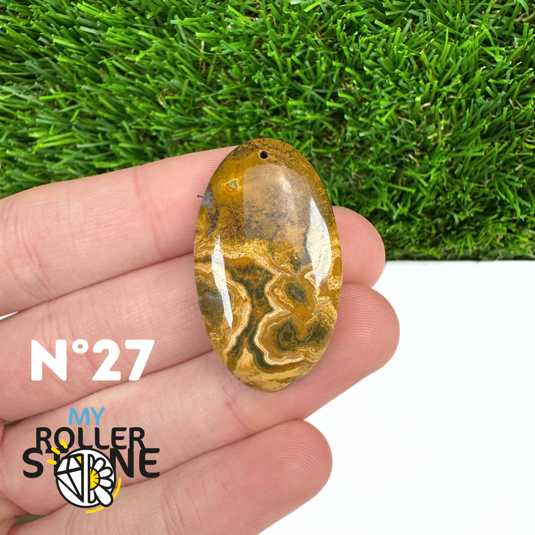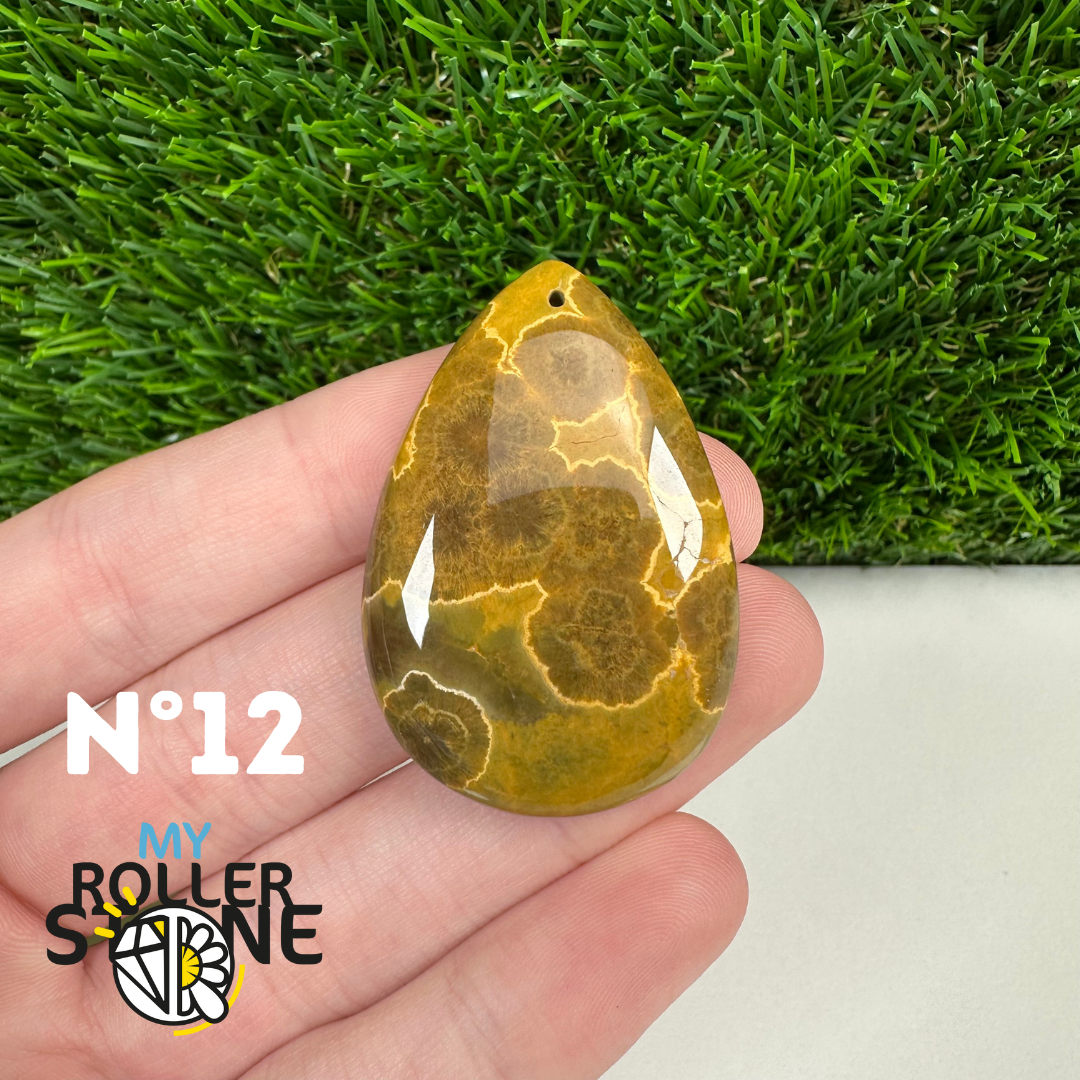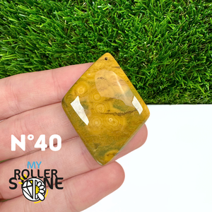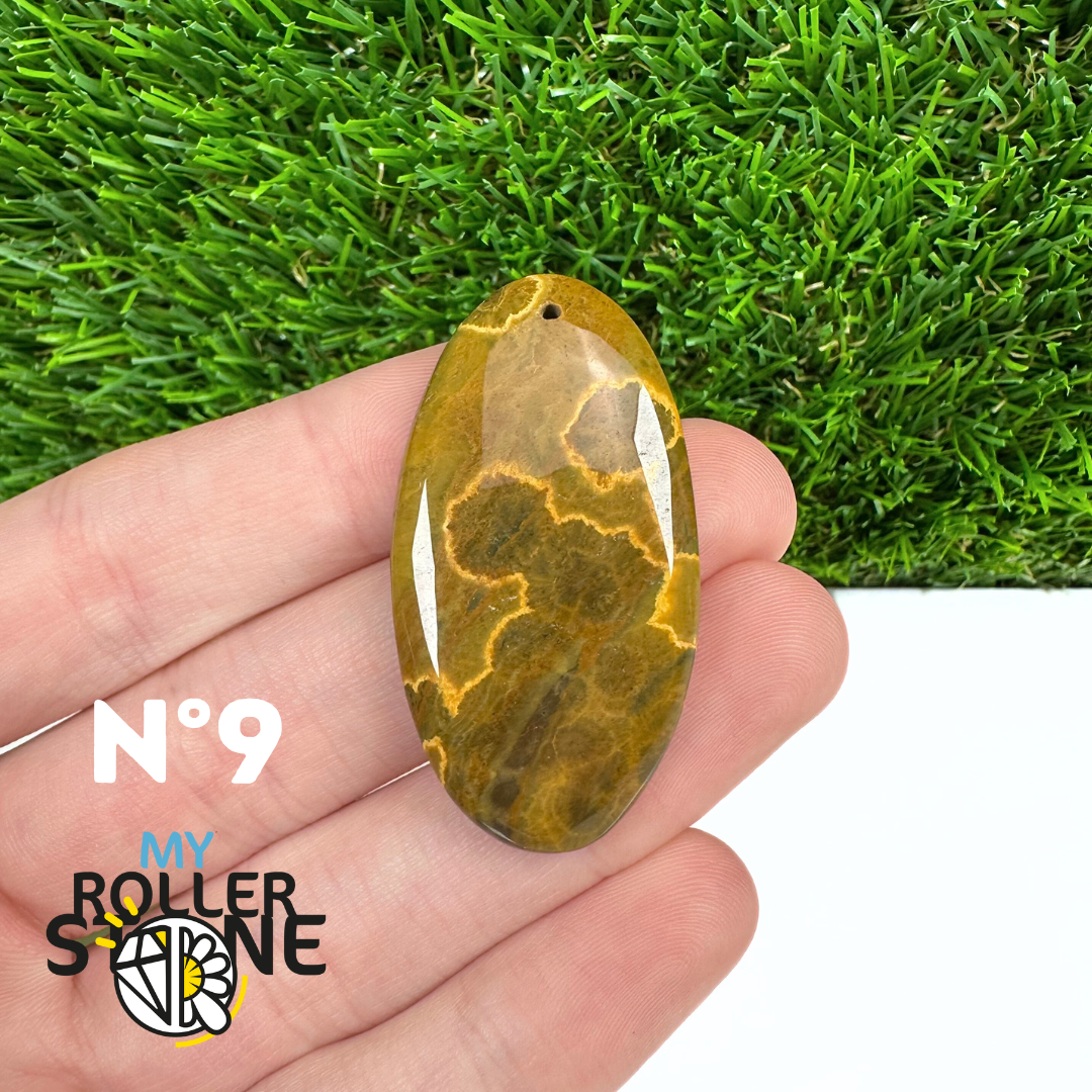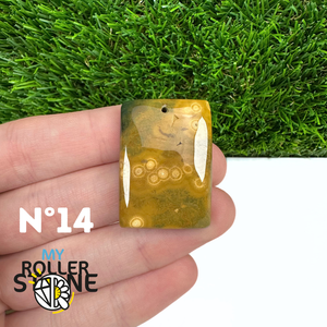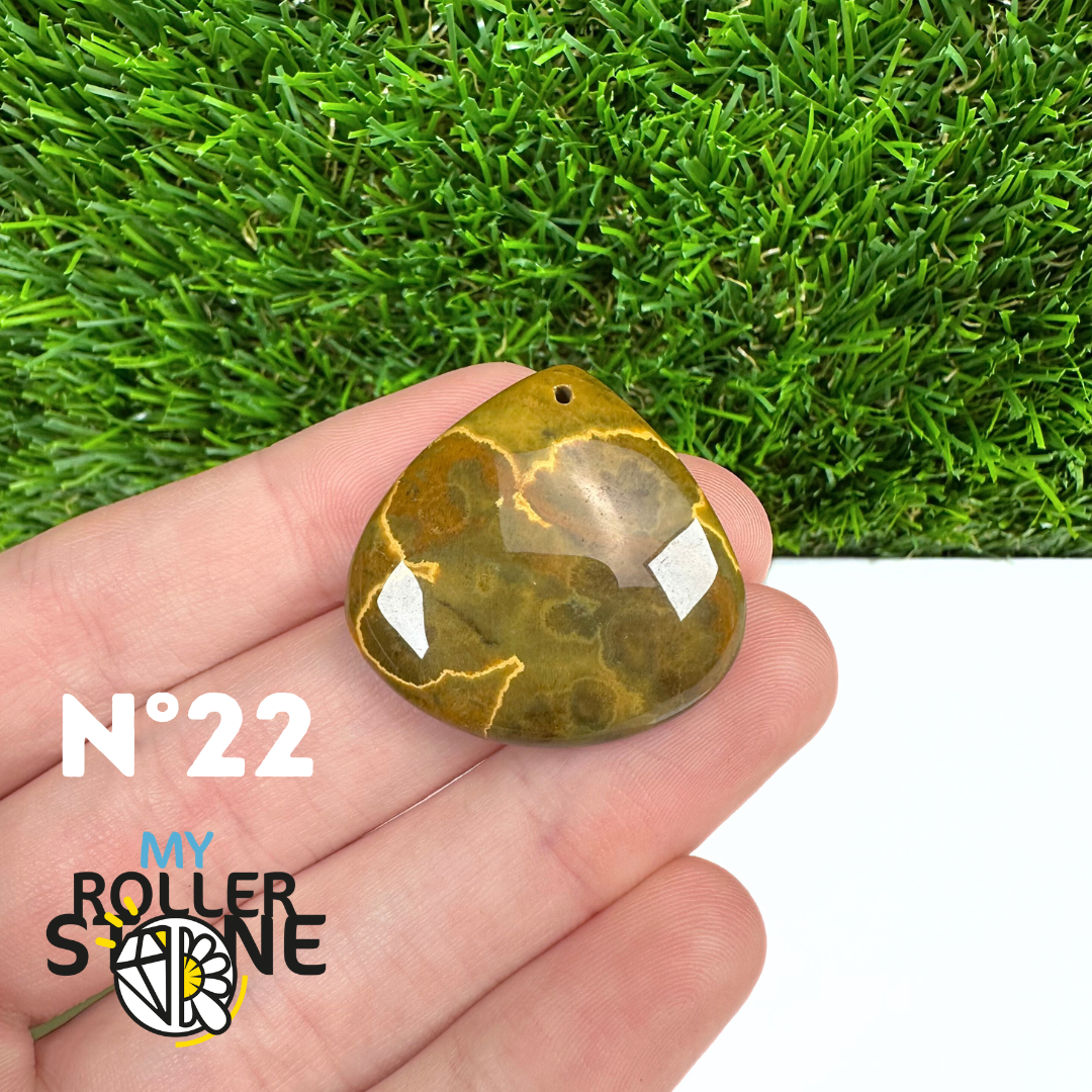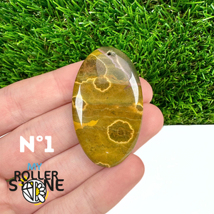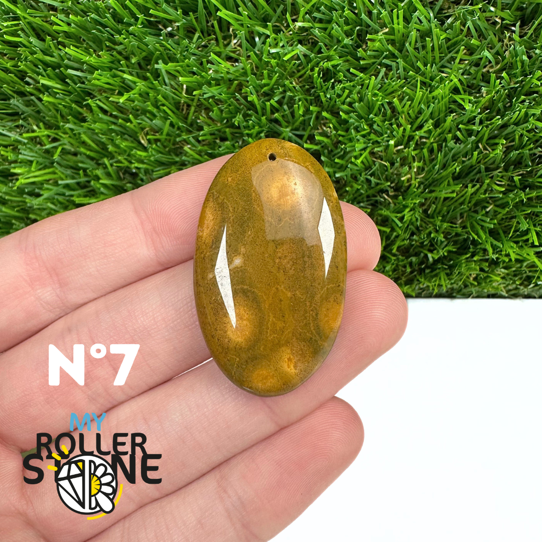 Ce pendentif percé en Jaspe Océan naturel – qualité 5A se distingue par ses motifs circulaires et ondulés caractéristiques, mêlant des nuances de vert, beige, crème, rose ou brun. Sélectionné pour sa qualité supérieure, chaque pendentif présente une richesse graphique remarquable et une finition polie soignée, faisant de chaque pièce un bijou unique.