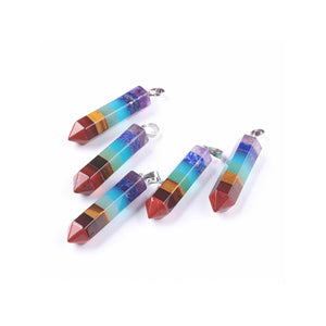 Pendentif Pointu 7 Chakras pour stimuler et aligner vos centres énergétiques, favorisant le bien-être physique, mental et spirituel. L'esthétique captivante de la pierre facettée ajoute une touche de sophistication à cette pièce qui va au-delà de l'aspect esthétique, offrant une expérience énergétique significative à chaque utilisateur.