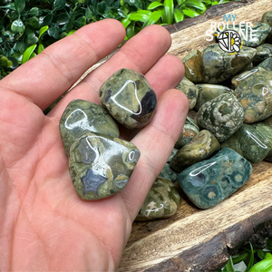 Plongez dans la diversité colorée de notre pierre roulée en Rhyolite, une gemme aux motifs uniques et aux teintes variées allant du vert au brun, en passant par le jaune et le rouge. La Rhyolite, formée à partir de lave volcanique, est soigneusement polie pour offrir une surface lisse et agréable au toucher. Chaque pierre roulée est unique, révélant des motifs fascinants et des stries naturelles qui ajoutent à son charme distinctif.