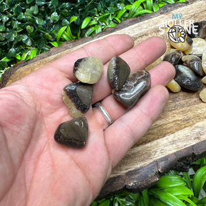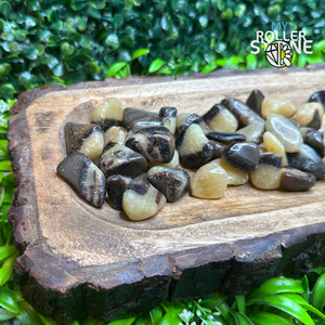 Pierre roulée Septaria, une incarnation de l'équilibre et de la tranquillité. Chaque pierre offre une palette de couleurs captivante, allant du beige au brun, ornée de motifs géométriques uniques formés par des calcites et des aragonites.