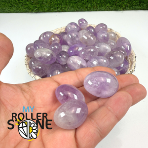 L’Améthyste est une variété de quartz reconnue pour sa couleur violette caractéristique, liée à la présence de fer et à des phénomènes naturels d’irradiation. Les améthystes foncées sont particulièrement appréciées pour leur intensité visuelle et leur aspect plus dense. Le roulage met en valeur la pierre tout en adoucissant ses contours.