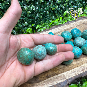 La Chrysocolle, souvent associée à la tranquillité et à l'harmonie, est soigneusement polie pour offrir une surface lisse et douce au toucher. Chaque pierre roulée est unique, révélant des variations de teinte et des motifs naturels qui ajoutent à son charme et à son élégance.