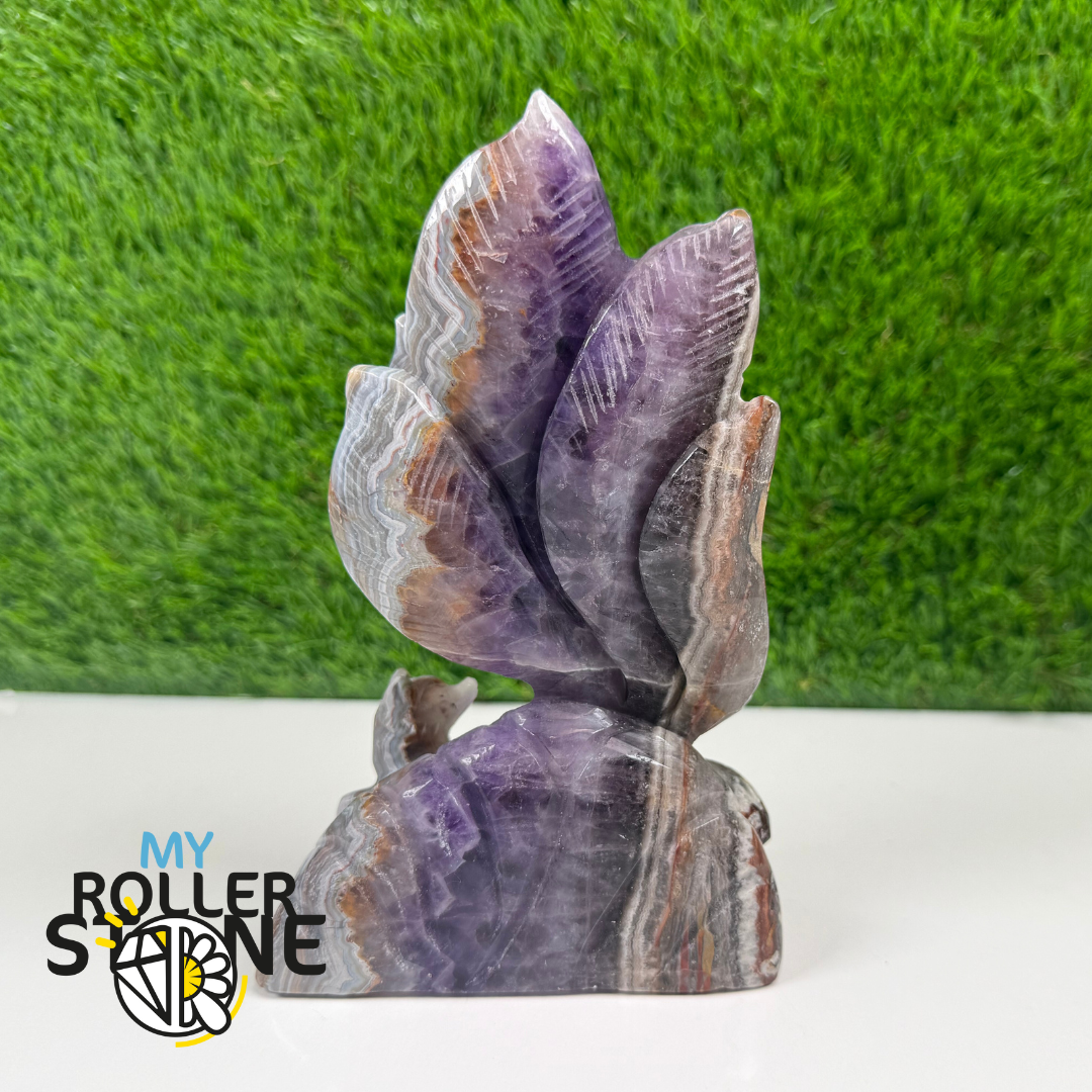 Sculpture en Améthyste Agatisée naturelle 5A – Renard de Clairvoyance